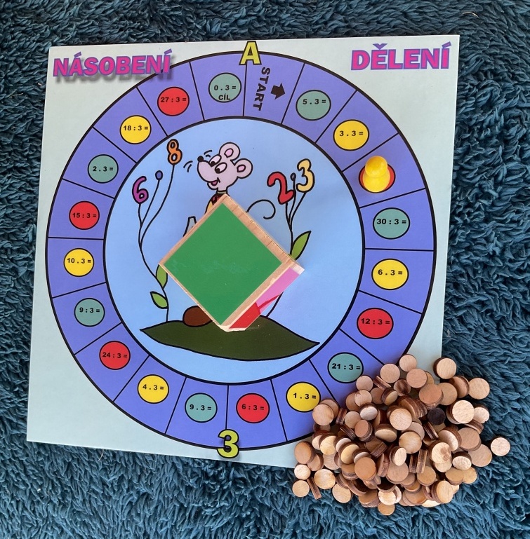 Cílem je získat co nejvíce žetonků za správně vypočítané příklady.